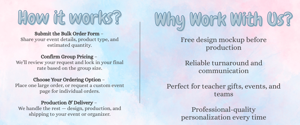 "Amazing! Not only are the products great quality and done right, the customer service is beyond fantastic! I will be purchasing from you again! Thank you so much!"