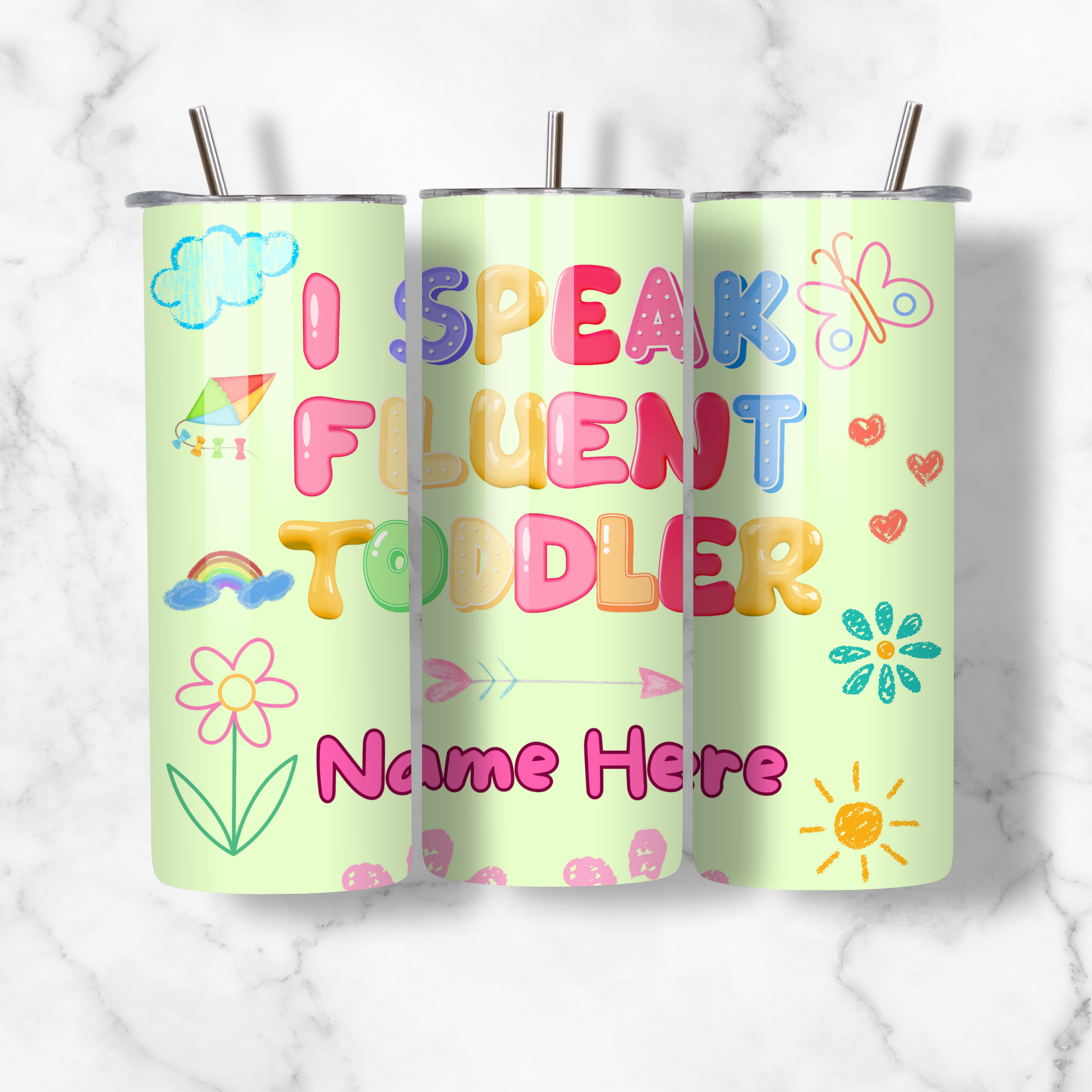 If you spend your day decoding toddler talk, calming meltdowns, and celebrating every new word—this "I Speak Fluent Toddler" tumbler is for YOU!